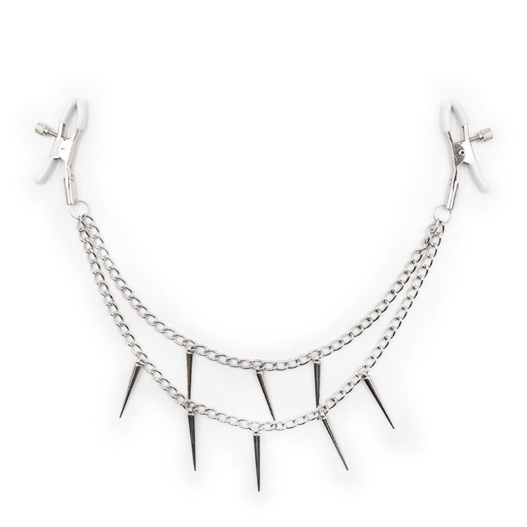These tweezers on the nipples with stainless steel chain.